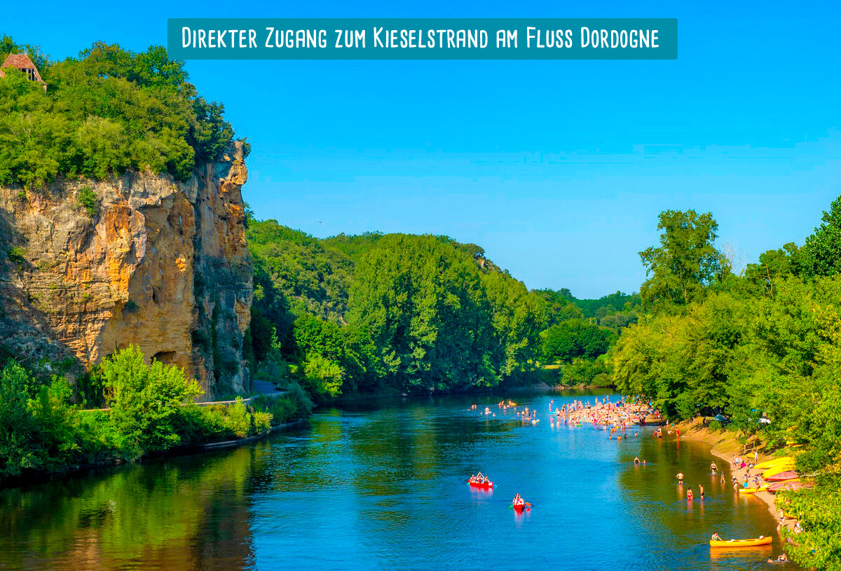 Direkter Zugang zum angelegten Strand am Fluss Dordogne