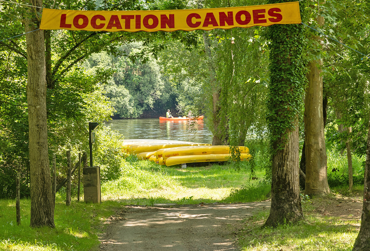 Verleih von Kanus, um das Tal der Dordogne hinunterzufahren und zu entdecken. Mehrere Strecken sind möglich.