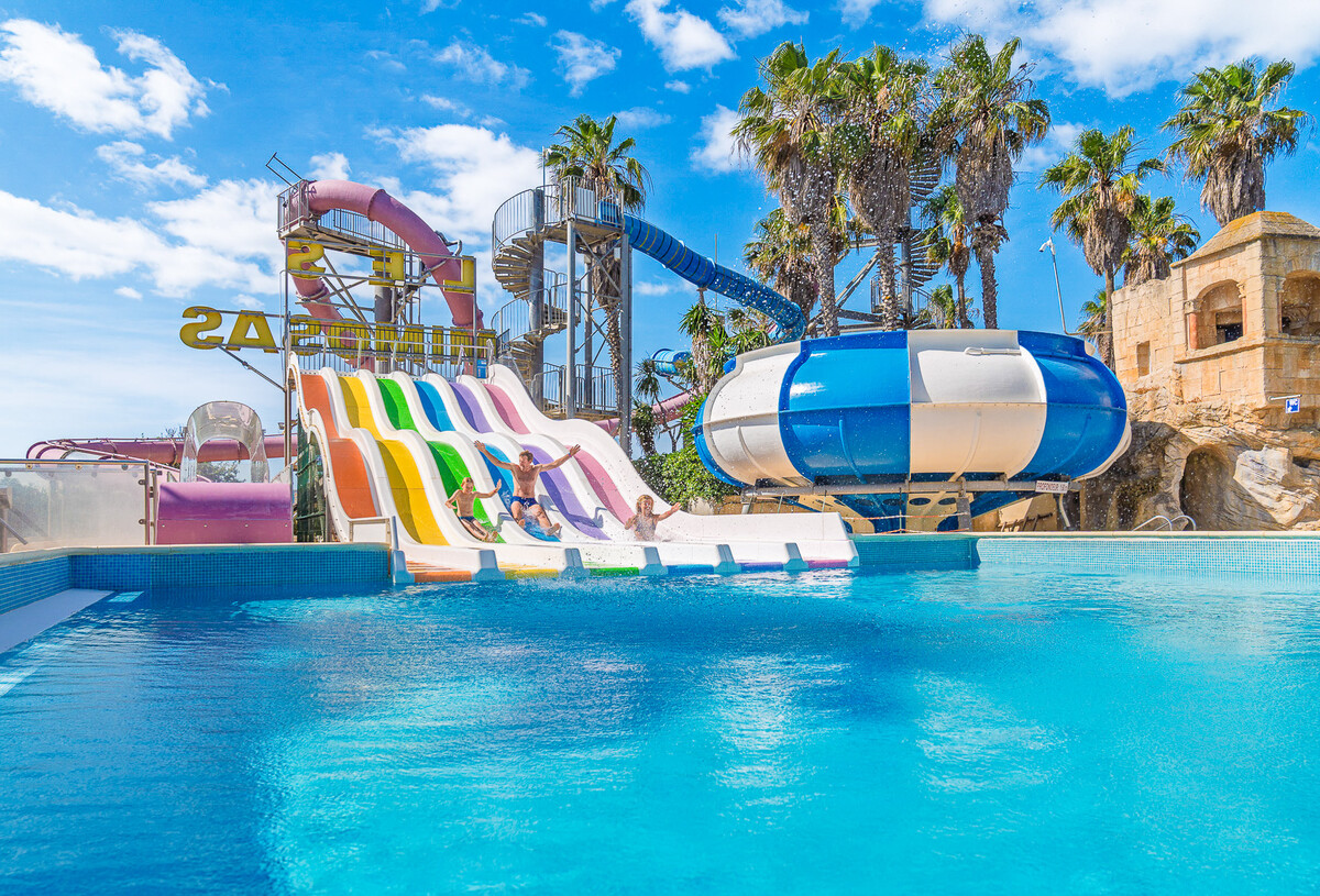 - Wasserrutschen: der Aqua Looping, die Mehrspuren-Rutsche, der Spacebowl, der Nervenkitzel, der Kamikaze, die Drachenkopf-Rutsche
