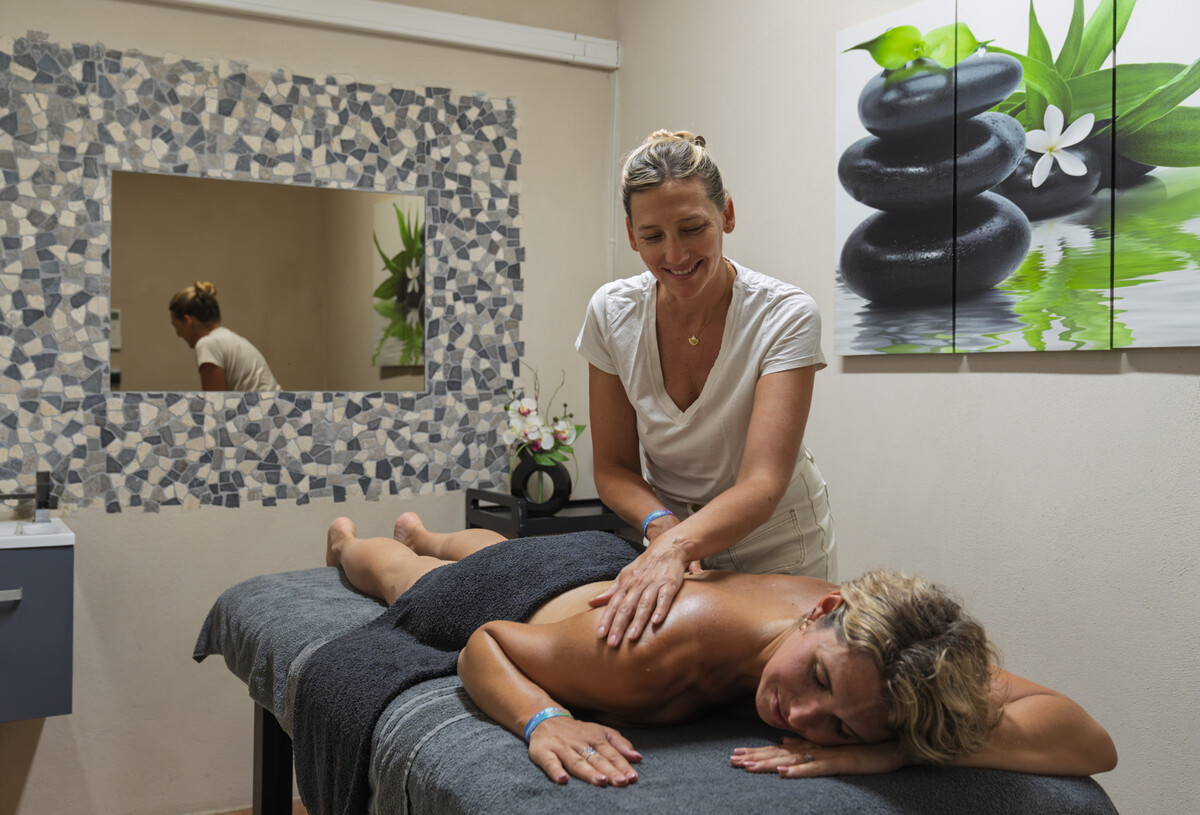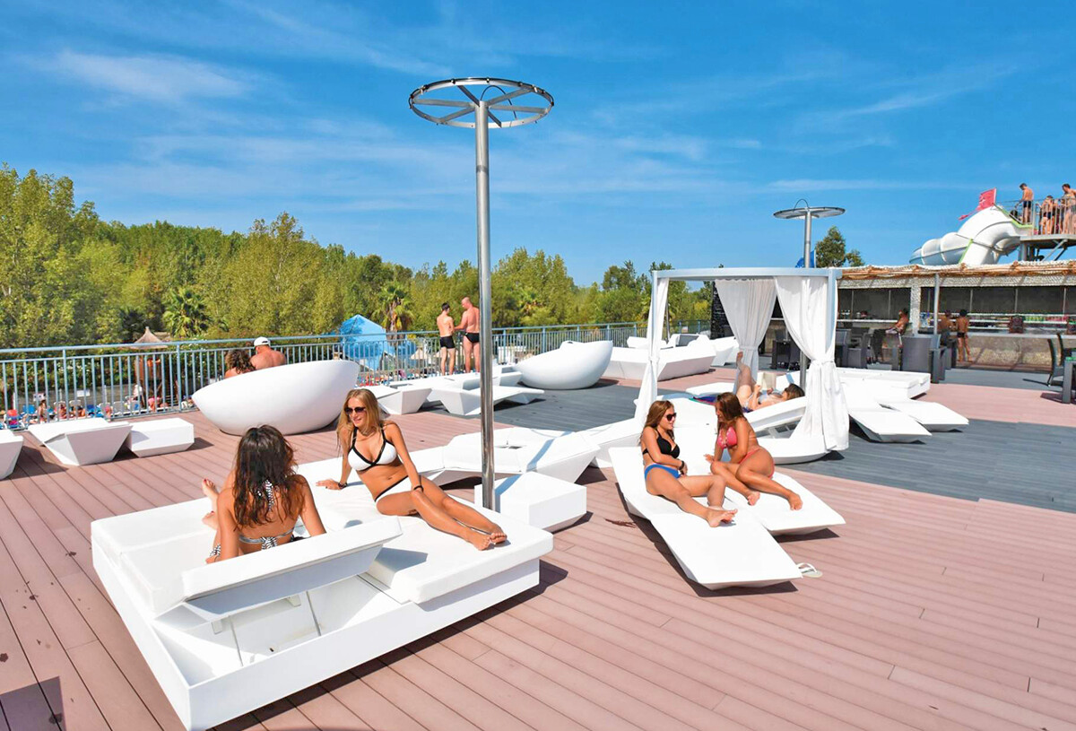 Genießen Sie einen entspannten Moment unter der Sonne auf einem Liegestuhl, während Sie ein Auge auf Ihre Kinder haben, die sich im Wasser-Spielbereich amüsieren. Entspannen Sie sich im Wellnessbereich, der für Erwachsene ab 18 Jahren reserviert ist.