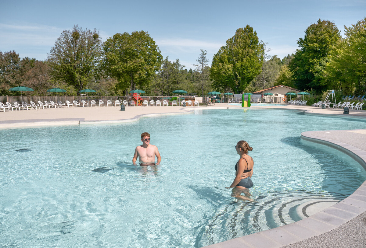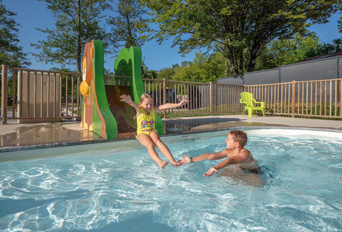 Im Wasserbereich des Campingplatzes Grisière verbringen Sie im großen beheizten Pool oder dem Planschbecken glückliche Momente mit der Familie Das Planschbecken ist für Kinder unter 6 Jahren geeignet. Die Liegestühle rund um den großen Pool laden Sie zu Tagen des Faulenzens ein!
