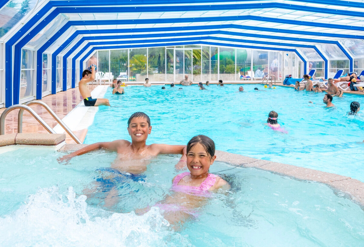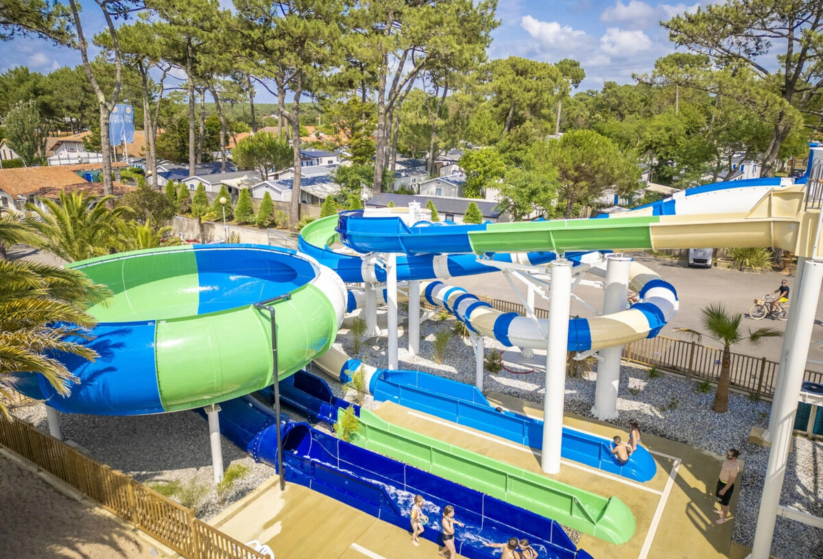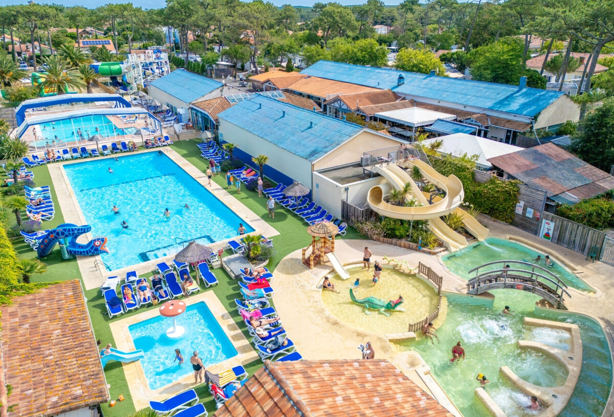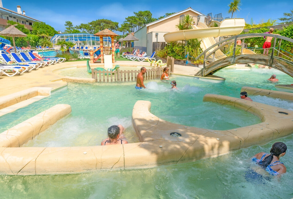 Für Sie: Ein beheiztes und überdachtes Schwimmbad mit Spa und Wasserfall, ein 25-Meter-Pool, 2 beheizte Planschbecken mit Wasserspielen für Kinder, Rutschen, darunter ein Spacebowl, ein beheiztes Thalassotherapiebecken mit 4 anatomischen Bänken, ein Spa, 3 Geysire und ein Massagefluss.