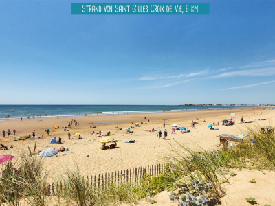Sehenswürdigkeiten: Großer Strand von Saint-Gilles-Croix de vie (6 km), Ile d'Yeu (30 km), Lac du Jaunay (15 km), Parc des Dunes (13 km), Marais Salants de la Vie (9 km), Sables d'Olonne (28 km), Parc du Puy du Fou (100 km), Ile de Noirmoutier (53 km), Château de Tiffauges (83 km), Dino's Park (10 km), Zoo des Sables d'Olonne (33 km). Zu praktizieren: Pop Corn Labyrinth (10 km), Reitzentrum Machecoul (45 km), Surfing Saint-Gilles (4 km), Wanderungen und Mountainbike-Touren (6 km), Karting Kart One (21 km), Atlantic Toboggan (17 km), O'Fun Park (61 km). Weitere informationen