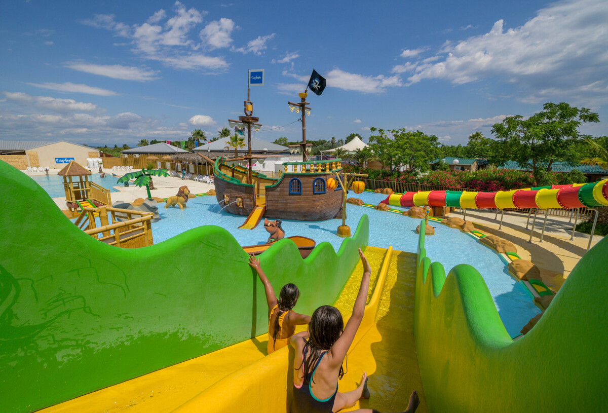 Für einen ruhigen und erholsamen Urlaub sind Sie im Campingplatz Palmira Beach und seiner Badelandschaft genau richtig. Unter der Sonne Südfrankreichs, mit der Familie, mit Freunden oder zu zweit, idealer Ort für Spaß und Vergnügen im beheizten Außenpool und im Planschbecken. Entspannen Sie sich bei einem Sonnenbad, während sich die Kleinen im Piratenschiff und auf den Wasserrutschen vergnügen: Eine Badelandschaft, die für alle Familienaktivitäten geeignet ist. Außerdem steht Ihnen ein Solarium zur Verfügung, um für einen schönen goldenen Sommerteint zu sorgen.