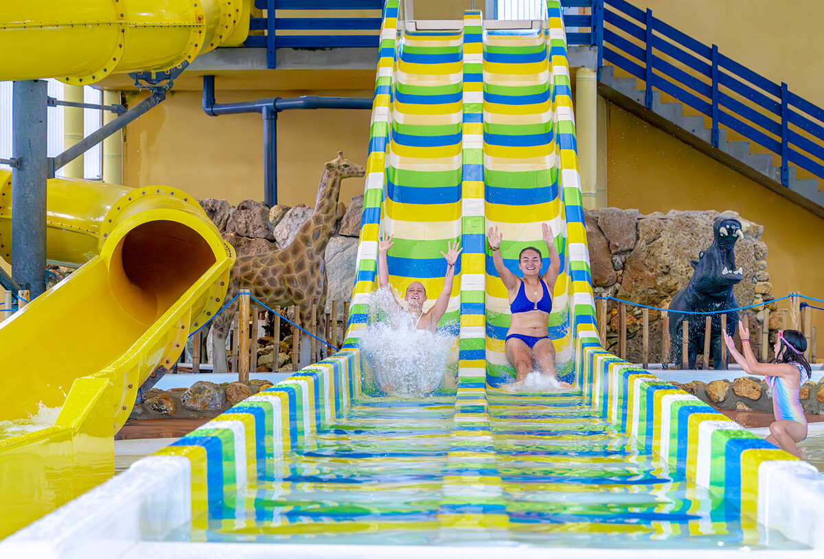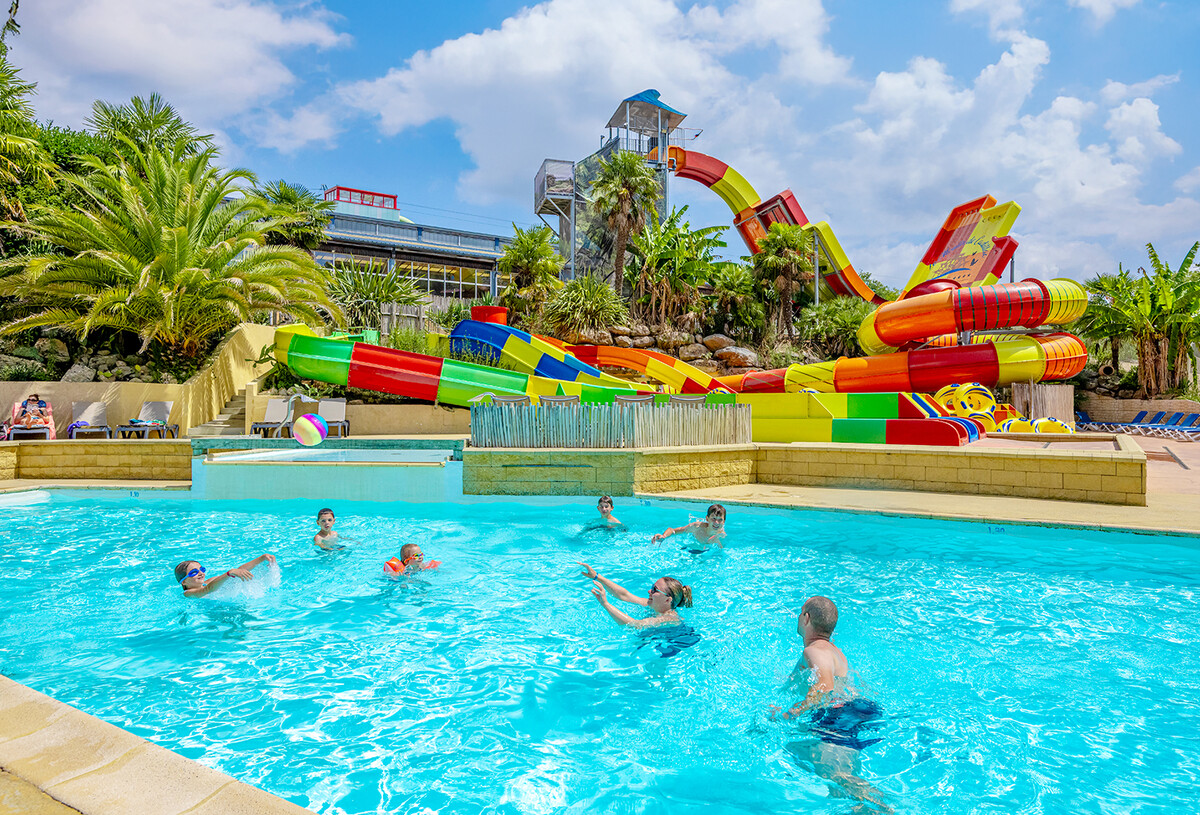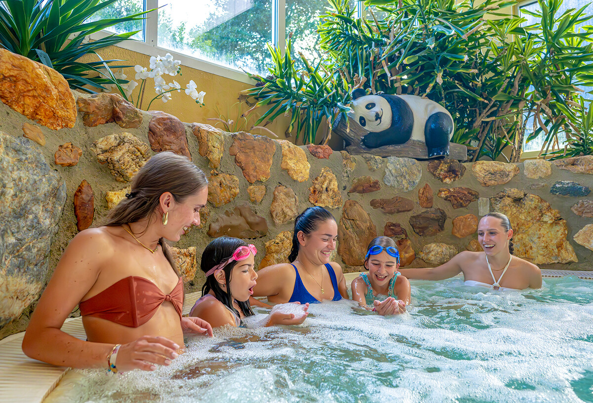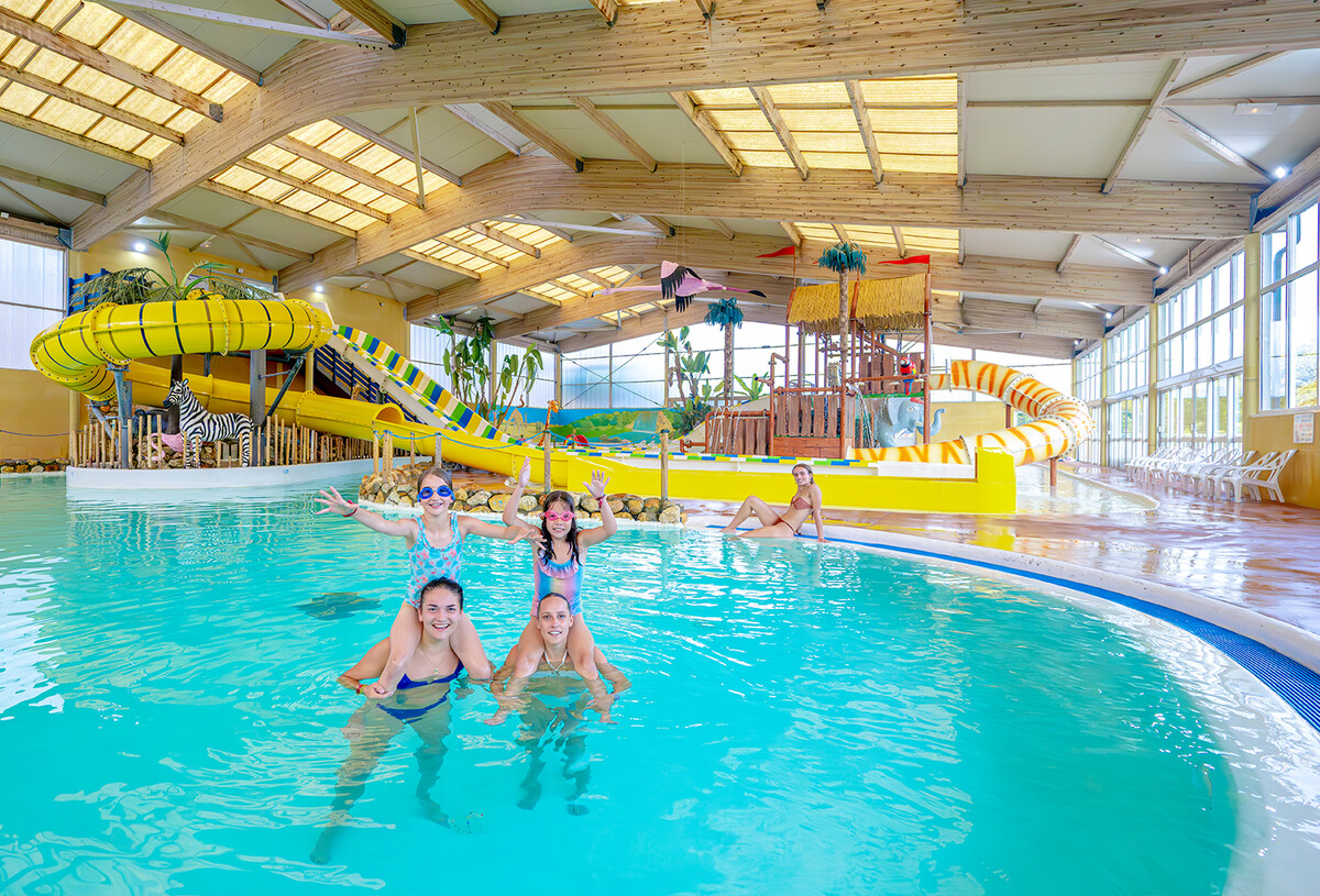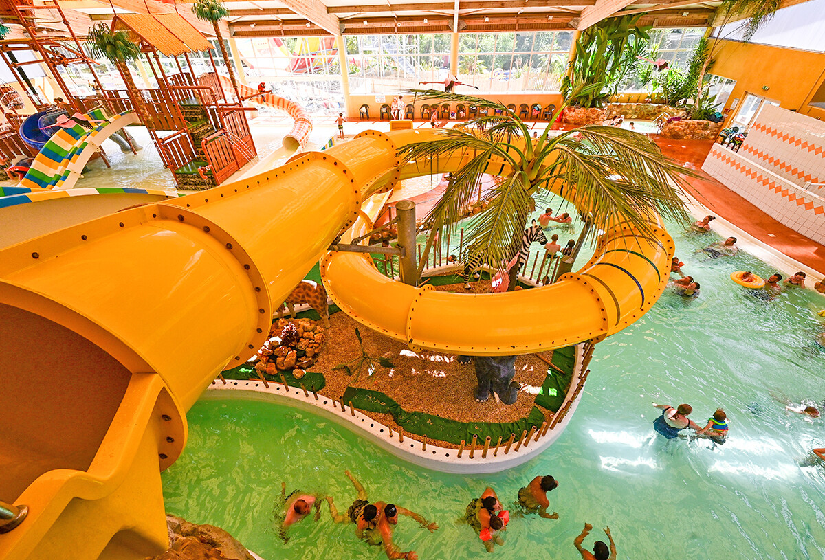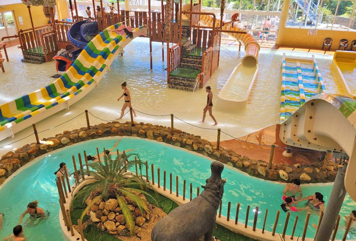 - Großer überdachter Wasserbereich in einer bunten und floralen Welt mit großem Pool, Wasserplanschbecken und Wasserrutschen (1 Spacebowl, 1 Kamikaze und 4 Pentagliss und 2 Rutschen), die Groß und Klein Spaß machen.