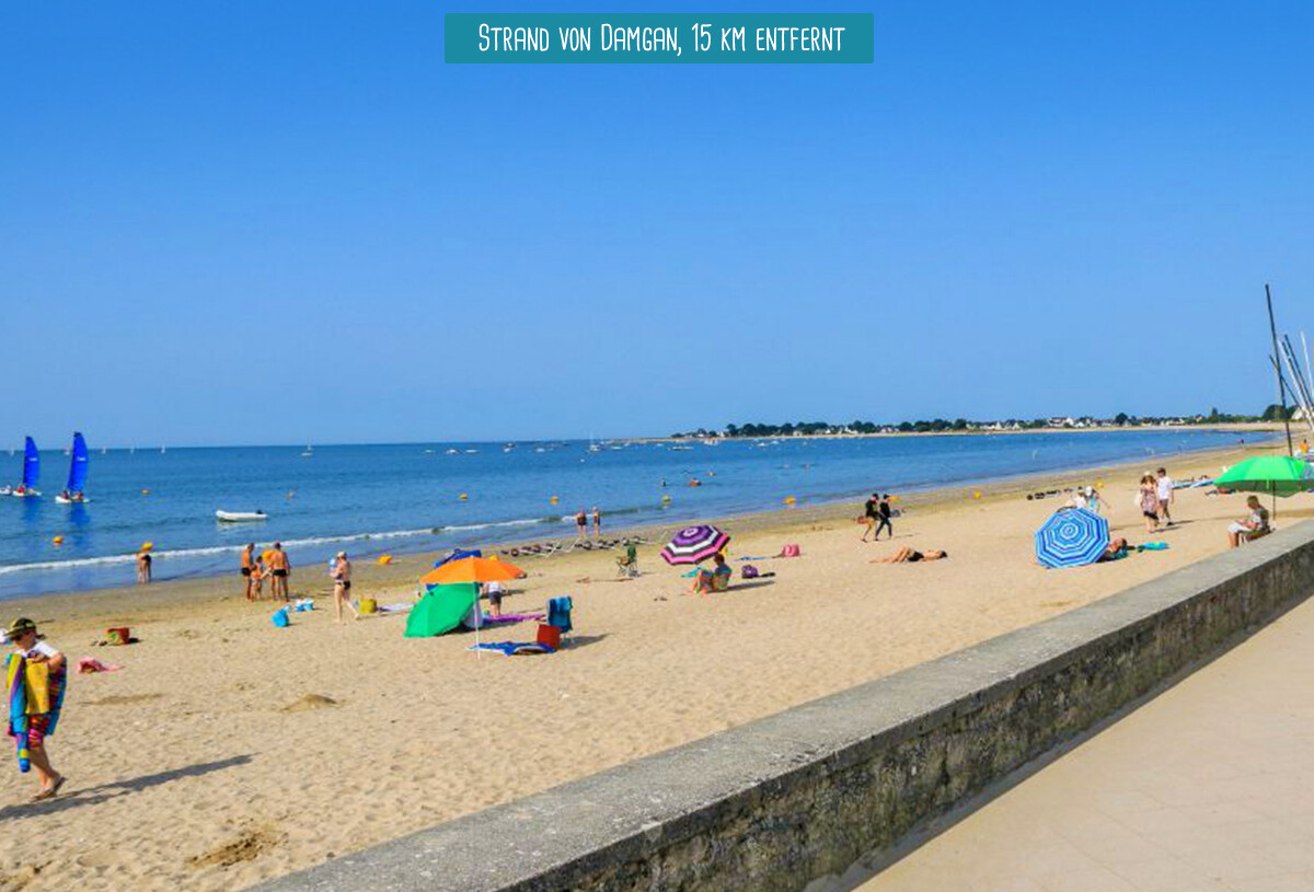 Zu besichtigen sind: Damgan (15,5 km), Rochefort-en-Terre (22,5 km), Vannes (25 km), La Roche-Bernard (25 km), Der Golf von Morbihan und die Bucht von Quiberon (30 km), Mine d'Or - Les falaises dorées de Pénestin (32 km), Parc de la Préhistoire de Bretagne (24 km), La Gacilly (41 km), Cairn de Gavrinis (42 km), Guérande (in 47 km), Grand menhir brisé de Locmariaquer (in 56 km), Alignements de Carnac (in 56 km), Musée des beaux-arts La Cohue (in 25 km), Château de l'Hermine (in 25 km), Château de Suscinio (in 27 km), Abbatiale de Saint Gildas de Rhuys (in 33 km), Cairn du Petit Mont in Arzon (in 37,4 km), Port-Navalo (in 40 km). Weitere Informationen