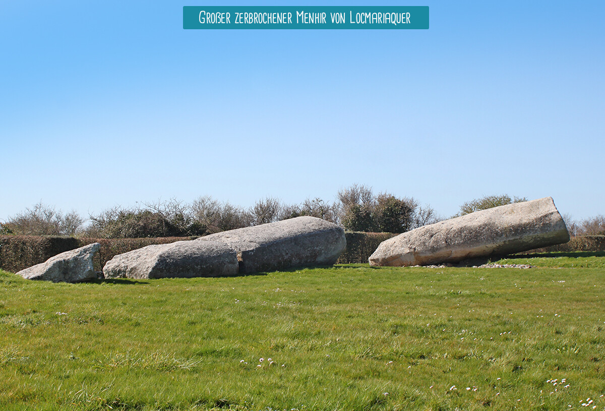 Faszinierende prähistorische Stätte in der Gemeinde Locmariaquer in der Bretagne. Dieses neolithische Monument aus der Zeit um 4500 v. Chr. war einst mit einer Höhe von über 20 Metern einer der größten Menhire in Europa. Heute ist er in mehrere Teile zerbrochen, bleibt aber aufgrund seiner Größe und seiner Geschichte beeindruckend.