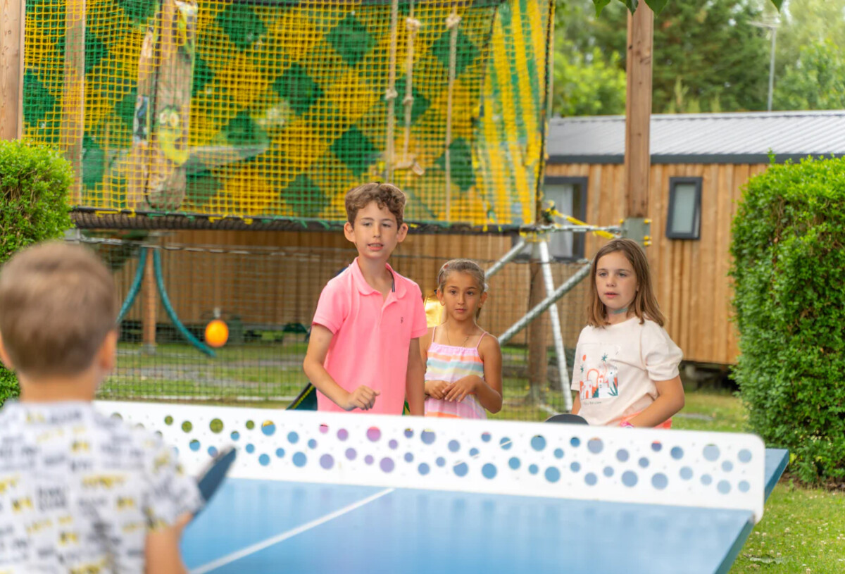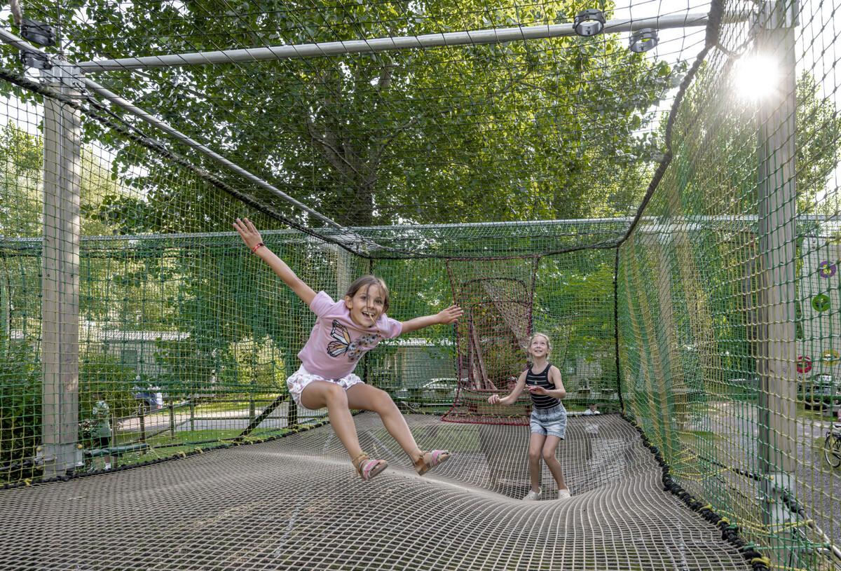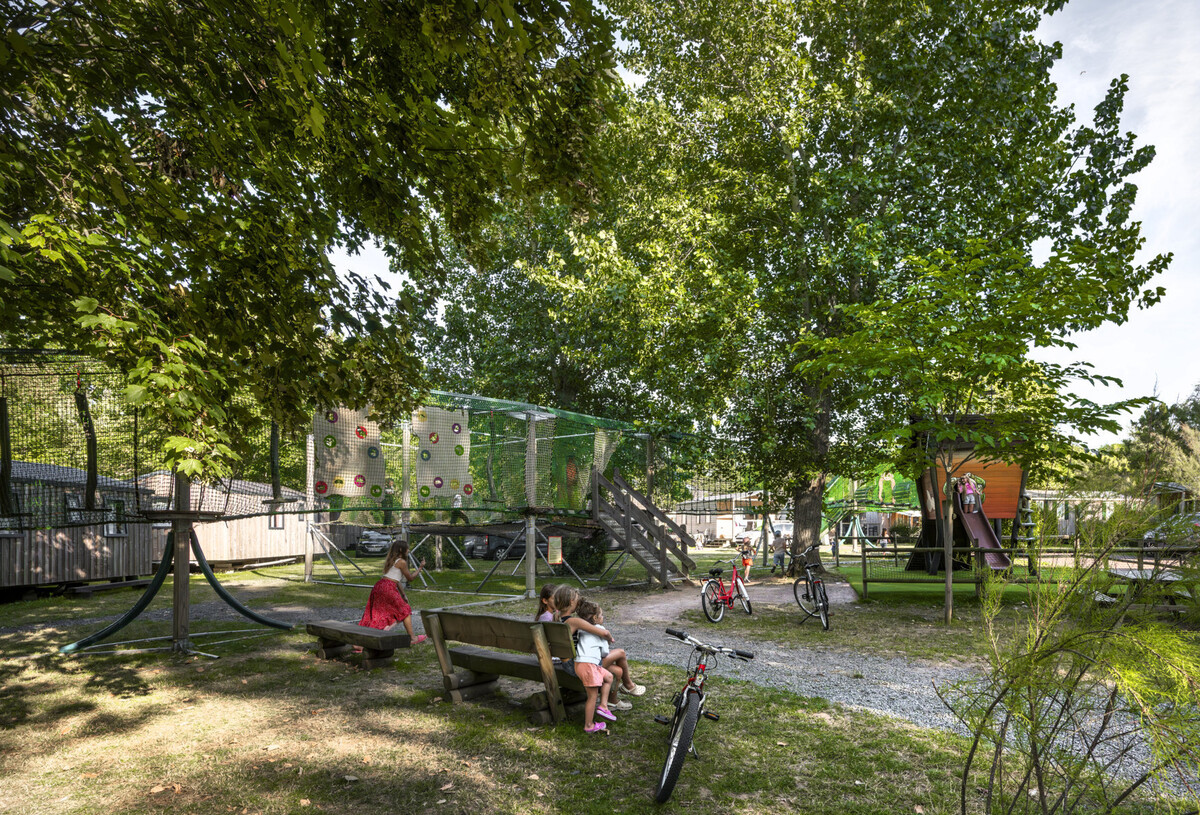 Ja, der Campingplatz verfügt über einen Spielplatz und einen Mini-Hochseilgarten.