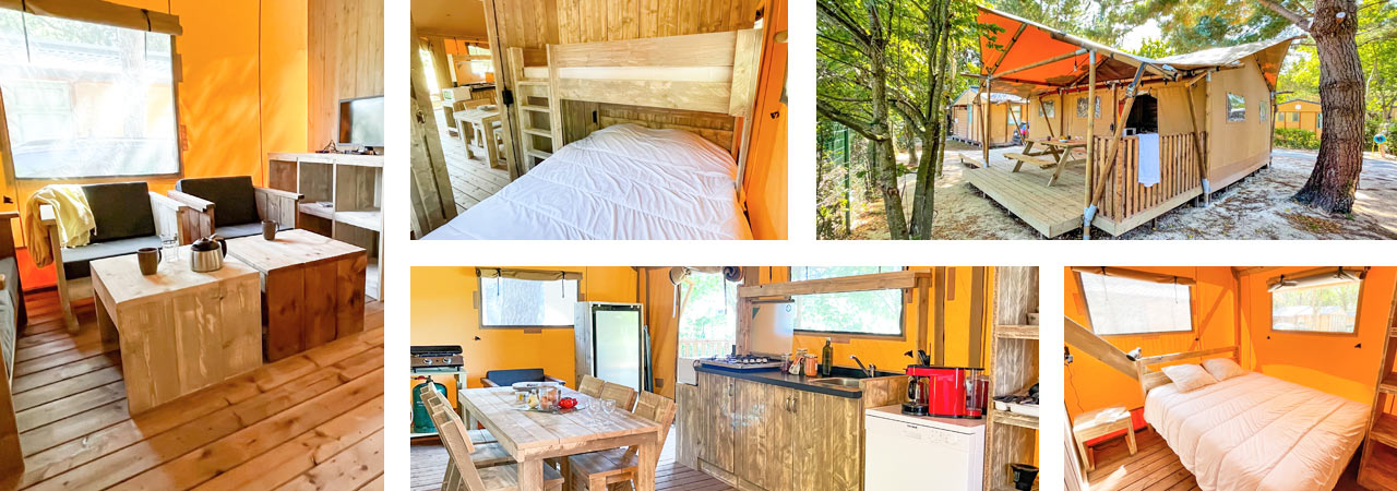 Das ist neu! Entdecken Sie eine ganz neue Reihe von Prestige-Unterkünften, um einen originellen und atypischen Aufenthalt wie moderne Robinsons zu erleben. Der Stoffbezug und die große Holzterrasse machen diese Unterkunft zu einem einzigartigen Ort für einen Familienurlaub. Der Komfort bleibt dabei nicht auf der Strecke.