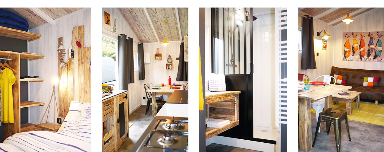 Die Dekoration der Hütte ist von der Küste und dem „Vintage“-Stil inspiriert. Das Zusammentreffen dieser beiden Stile ergibt ein modernes und trendiges Ganzes.
